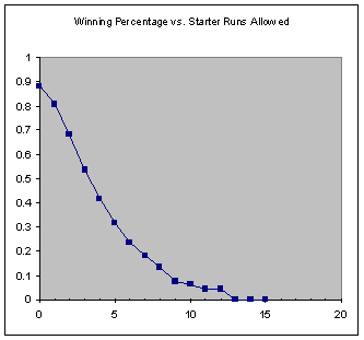I've been playing lately with the notion of the demands that the starting pitcher puts on the rest of the team lately. When you get right down to it, that's a useful thought -- if the starter goes less than 9 innings, he's demanding outs from the bullpen, and if he gives up runs, he's demanding runs from the offense. Those two things turn out to be highly interrelated, so there's not a simple formula that combines them, but some of the gleanings along the way are interesting.